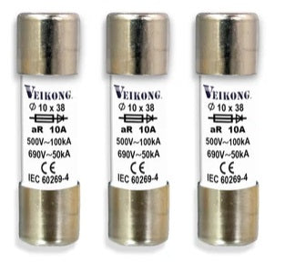 Juego de 3 Fusibles de Cartucho de Ceramica para Seccionador RT18-32,Tamaño 10X38 mm, Accion Rapida (aR) de 10 A,100 KA, para Variador:ACS180-04S-04A8-1, ACS180-04S-04A8-2, ACS180-04S-03A3-4, ACS180-04S-05A6-4, ACS355-03E-02A4-4, ACS355-03E-04A1-4